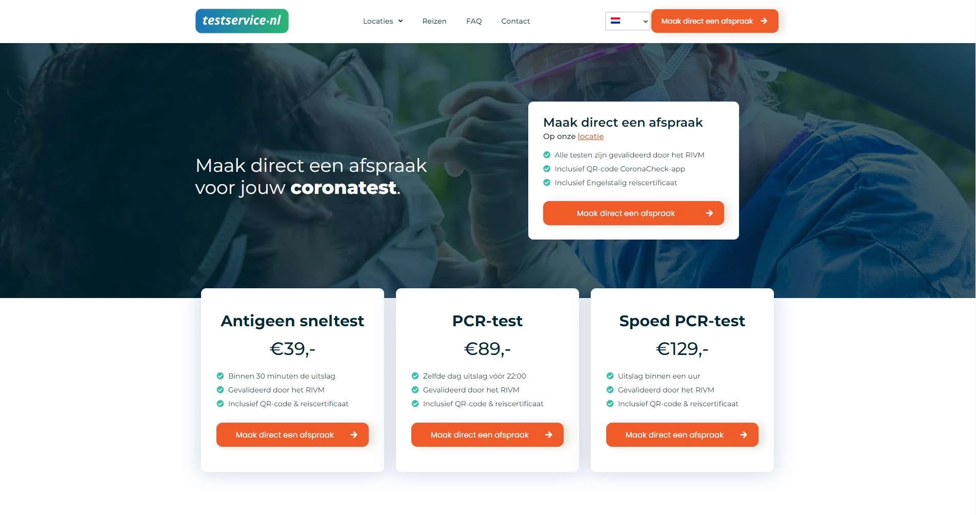 Testservice.nl was ten tijde van de COVID-19 pandemie een coronatest bedrijf met 6 locaties in diverse Nederlandse steden, voornamelijk in de Randstad. Testservice.nl nam PCR- en Antigeentesten af bij consumenten en bedrijven. Bij een negatief testresultaat ontving de patiënt een negatief testbewijs en een internationaal reiscertificaat.